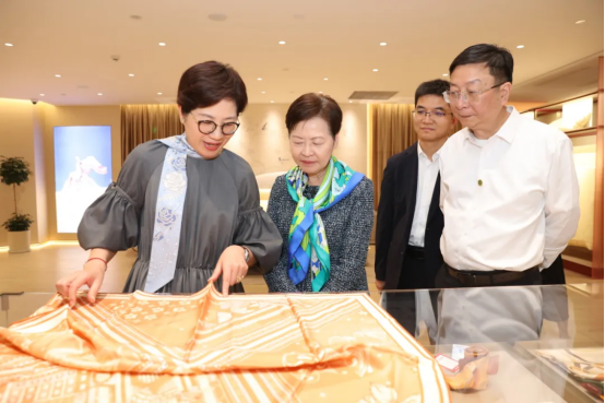 林鄭月娥表示,自己一直對(duì)絲綢情有獨(dú)鐘,并對(duì)萬(wàn)事利品牌印象深刻。2017年8月,她曾以香港特區(qū)行政長(zhǎng)官身份到訪萬(wàn)事利,充分肯定企業(yè)在絲綢非遺傳承與文化創(chuàng)新方面的貢獻(xiàn)。此次再訪,她欣喜地看到萬(wàn)事利在數(shù)字化轉(zhuǎn)型和國(guó)際化發(fā)展上取得的新成就,認(rèn)為企業(yè)發(fā)展經(jīng)驗(yàn)值得借鑒。