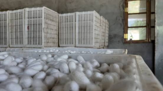 ▲圖為弄龍村折高壩孫加清戶和養(yǎng)殖的蠶