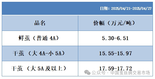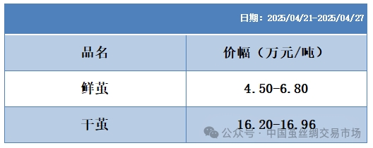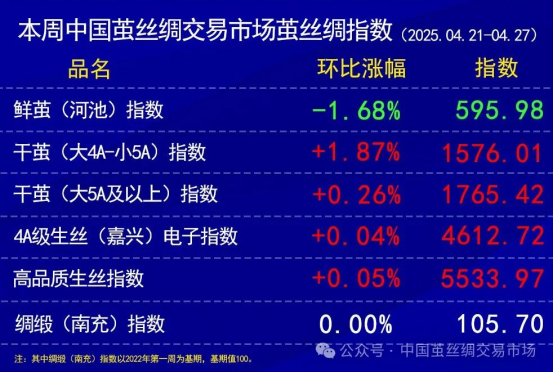 本周繭絲綢各指數(shù)紅綠不一(20250427)