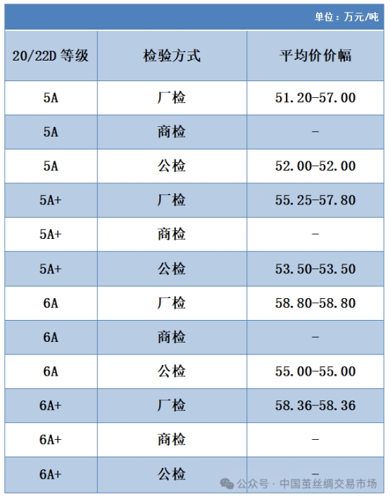 本周高品位生絲協(xié)作單位成交價格區(qū)間
