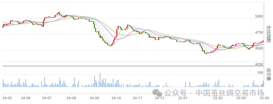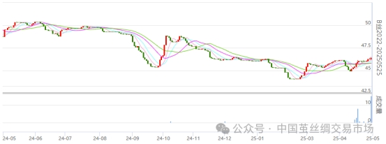 今日(周三)生絲盤面各遠(yuǎn)近合約價(jià)格繼續(xù)有所走高,多數(shù)合約今日有成交,持倉量繼續(xù)放大。
