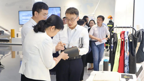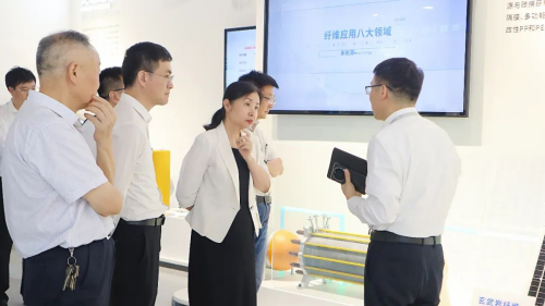 調(diào)研中,董琤一行實(shí)地參觀了創(chuàng)新中心展廳,詳細(xì)了解中心在纖維材料創(chuàng)新及綠色低碳方面的技術(shù)研發(fā)、專(zhuān)利布局及成果轉(zhuǎn)化情況。