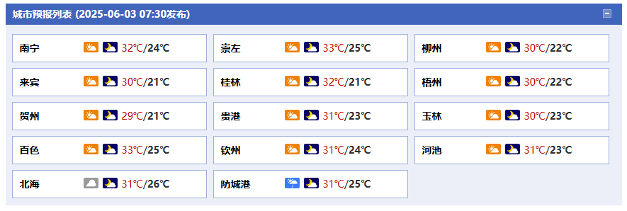 廣西氣象臺(tái)3日05時(shí)發(fā)布預(yù)報(bào):