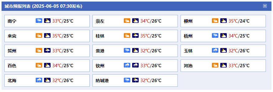 廣西氣象臺(tái)5日05時(shí)發(fā)布預(yù)報(bào):