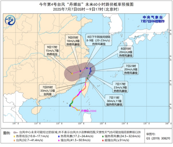 今天(7月7日)凌晨,臺(tái)風(fēng)“丹娜絲”登陸臺(tái)灣嘉義縣沿海,登陸時(shí)強(qiáng)度為臺(tái)風(fēng)級(jí),截至7時(shí)前后,它已減弱為強(qiáng)熱帶風(fēng)暴。預(yù)計(jì)“丹娜絲”將繼續(xù)北上,不排除登陸我國浙江、福建沿海的可能,公眾需密切關(guān)注臺(tái)風(fēng)動(dòng)向,做好防臺(tái)風(fēng)措施。今明天,我國高溫范圍將縮減,但悶熱天氣格局難以改變,尤其是江南一帶晝夜蒸煮,燜蒸感明顯,仍需持續(xù)做好防暑措施。