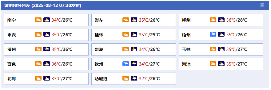 廣西氣象臺(tái)12日05時(shí)發(fā)布預(yù)報(bào):