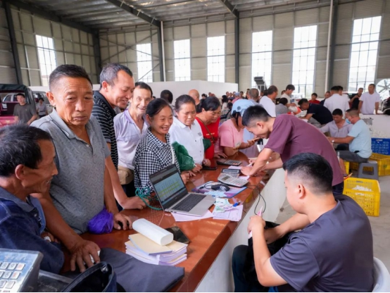 8月11日,貴州絲緣蠶業(yè)科技有限公司蠶繭收購現(xiàn)場(chǎng)人頭攢動(dòng),蠶農(nóng)們帶著一袋袋雪白的蠶繭排隊(duì)等待出售,工作人員正忙著分揀、評(píng)定等級(jí)、稱量、開票、付款、登記、分類堆放等,忙得不亦樂乎,現(xiàn)場(chǎng)一片繁忙豐收景象。