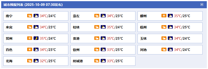 廣西氣象臺(tái)9日05時(shí)發(fā)布預(yù)報(bào):