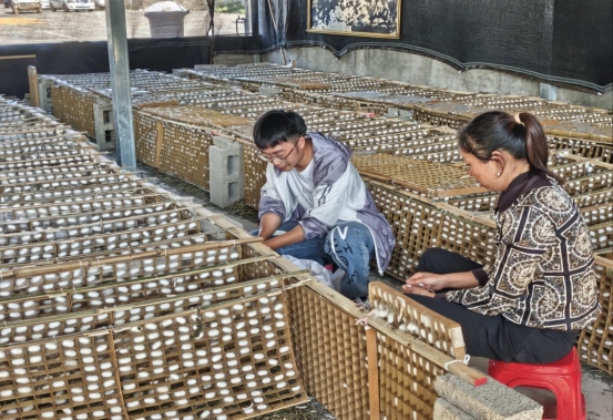 近年來,石硐村立足自身資源稟賦,結(jié)合種桑養(yǎng)蠶基礎(chǔ),引導(dǎo)村民積極發(fā)展周期短、見效快的桑蠶養(yǎng)殖。2025年,村集體試養(yǎng)蠶苗6.4萬余只,經(jīng)過半個月科學(xué)飼養(yǎng),首批蠶繭順利采收。據(jù)測算,該批蠶繭預(yù)計能為村集體經(jīng)濟(jì)增收5000余元。