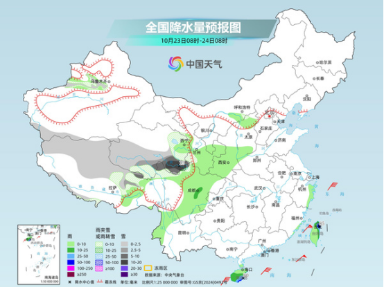 其中,今天,新疆沿天山地區(qū)西段,青海東部和南部、甘肅西南部、川西高原北部、西藏北部等地部分地區(qū)有小到中雪或雨夾雪,其中,西藏東北部、青海東南部、甘肅西南部、川西高原北部等地部分地區(qū)有大雪或暴雪;西北地區(qū)東南部、四川盆地大部、云南西部、海南島、臺灣島等地部分地區(qū)有小到中雨,其中,海南島東南部、臺灣島東北部等地部分地區(qū)有大雨或暴雨。