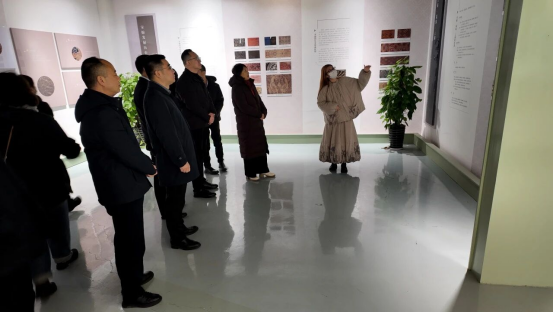 隨后,考察組來到上久楷國禮展廳。展廳內(nèi)陳列了多件以上等宋錦精心制作的國禮與重要外交場(chǎng)合禮品,其精湛的工藝、深厚的文化寓意和卓越的設(shè)計(jì)品位,令來賓深刻感受到宋錦作為國家級(jí)非物質(zhì)文化遺產(chǎn)所承載的尊貴氣度與文化自信。
