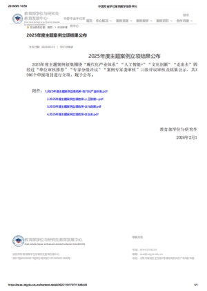 據悉,教育部學位中心統(tǒng)籌開展2025年度主題案例征集工作,緊扣時代發(fā)展脈搏與國家重大戰(zhàn)略需求,核心旨在充分發(fā)揮高質量案例在高層次應用型人才培養(yǎng)中的“活頁教材”作用。本次征集重點倡導立足中國特色社會主義偉大實踐,提煉兼具時代性與原創(chuàng)性的學術觀點,持續(xù)豐富中國自主知識體系建構的優(yōu)質素材庫,為加快建設教育強國與人才強國筑牢資源根基。經過“單位審核推薦”“專家分組評議”“案例專家委審核”三級嚴格遴選及公示,全國最終有340家單位的906個優(yōu)秀項目脫穎而出,成功獲批立項。
