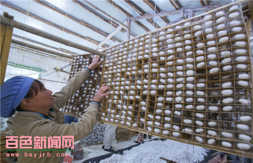 下甲鎮(zhèn)加西村蠶農(nóng)在收蠶繭