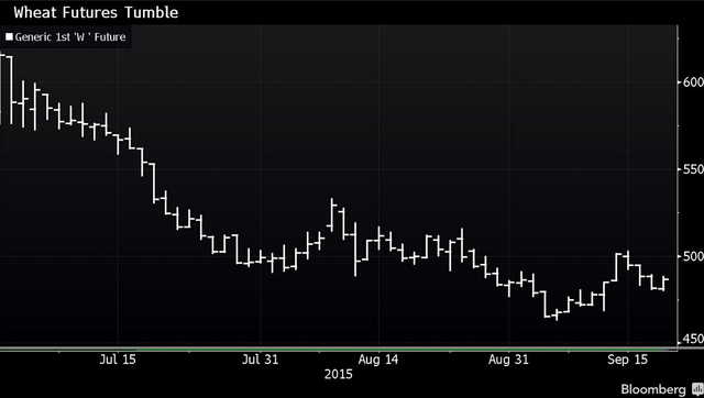 國(guó)際小麥期貨價(jià)格自6月底來已經(jīng)下跌了21%,創(chuàng)1986年來最大三個(gè)月跌幅。隨著美國(guó)、俄羅斯和烏克蘭產(chǎn)量增多,全球庫(kù)存在明年收獲季節(jié)開始前有望攀升至歷史高位。