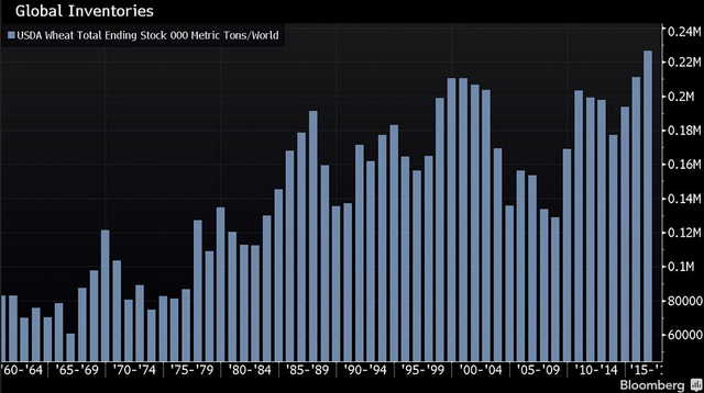 “投資者持續(xù)看空小麥價(jià)格,因?yàn)槿蛩袊?guó)家?guī)缀醵荚谠黾庸┙o?!?Stephenson & Co. Capital Management首席執(zhí)行官John Stephenson稱,“全球小麥供給如此之多,投資者購(gòu)買小麥完全不會(huì)出現(xiàn)問題?!?br>