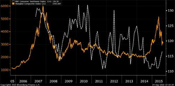 圖表:消費者信心和上證綜指