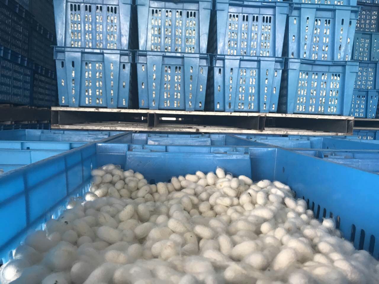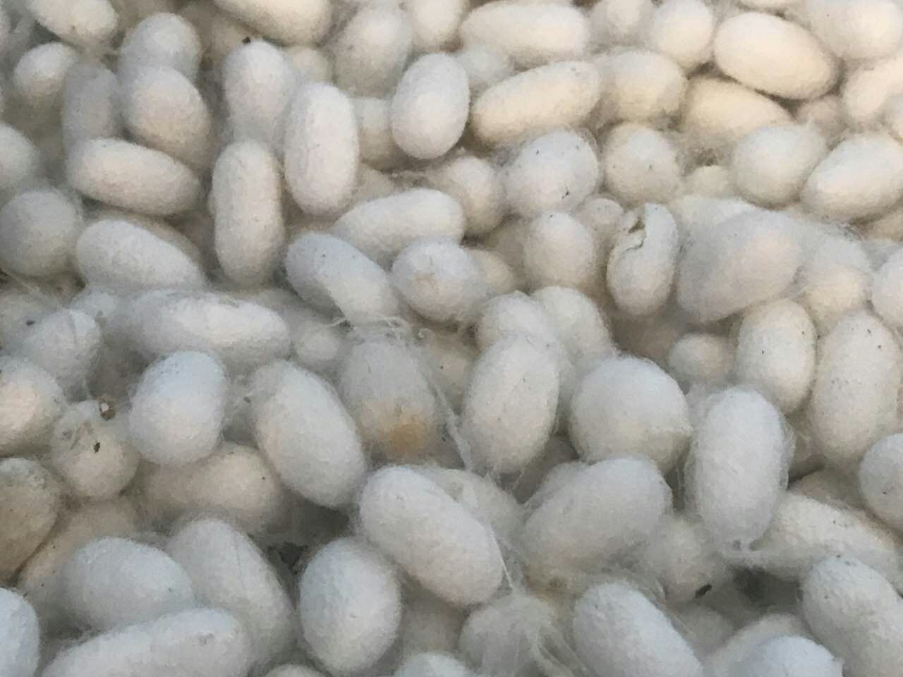 收購價格高企的同時,這兩天上市蠶繭質量一般,顆粒小、繭層薄、解舒差,一般在50-55,毛折偏大。
