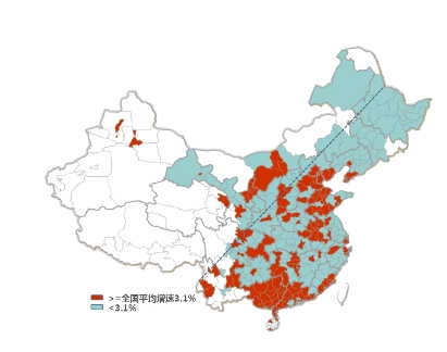 2016年我國人口密度等高線數(shù)據(jù)來源:省統(tǒng)計年鑒,城市統(tǒng)計公報