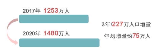 根據(jù)《深圳十三五規(guī)劃》,到2020年深圳常住人口預期目標1480萬人,2017年是1253萬人,可見未來三年深圳常住人口還有227萬的增長空間,年均可增長約75萬人。