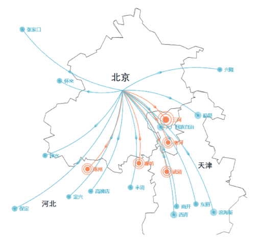 中指大數(shù)據(jù)顯示,北京及其周邊存在如下人流軌跡: