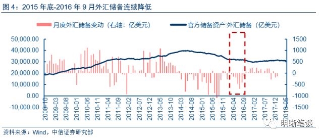 2016年人民幣貶值的主要原因?yàn)橘Y本外流。第一階段期間,2015年11月、12月外匯儲(chǔ)備分別減少872億美元、1079億美元;2016年前三季度官方外匯儲(chǔ)備分別減少1178億美元、74億美元和388億美元,延續(xù)了2017年以來(lái)下降趨勢(shì)。此外,國(guó)內(nèi)企業(yè)對(duì)外投資加速,16年上半年,企業(yè)股權(quán)對(duì)外直接投資流出783億美元,對(duì)外提供貸款資金流出441億美元,合計(jì)流出1224億美元,是外匯儲(chǔ)備下降的主要原因。外加企業(yè)和銀行償還外債、個(gè)人購(gòu)匯流出及借道經(jīng)常項(xiàng)目的流出,外匯儲(chǔ)備下降→人民幣貶值→外儲(chǔ)下降加劇的惡性循環(huán)加劇,引發(fā)2016年人民幣匯率的貶值。