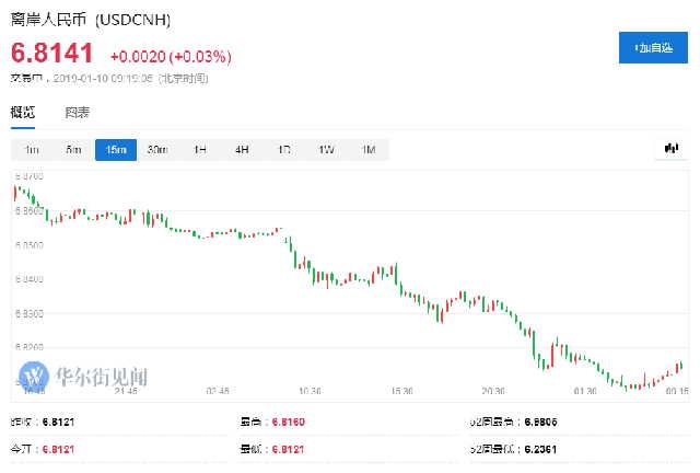 1月10日周四,人民幣中間價報6.8160,較上一交易日中間價6.8526上漲366點。周三官方收盤價6.8330,夜盤收報6.8175。