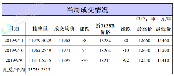 截至9月11日,累計(jì)計(jì)劃出庫101.15萬噸,成交最高價15930元/噸,成交最低價10750元/噸。