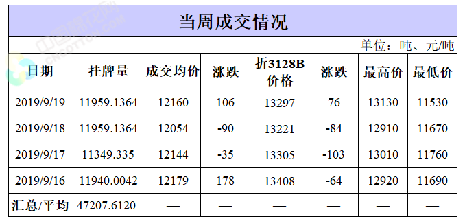 截至9月19日,累計(jì)計(jì)劃出庫107.06萬噸,成交最高價(jià)15930元/噸,成交最低價(jià)10750元/噸。