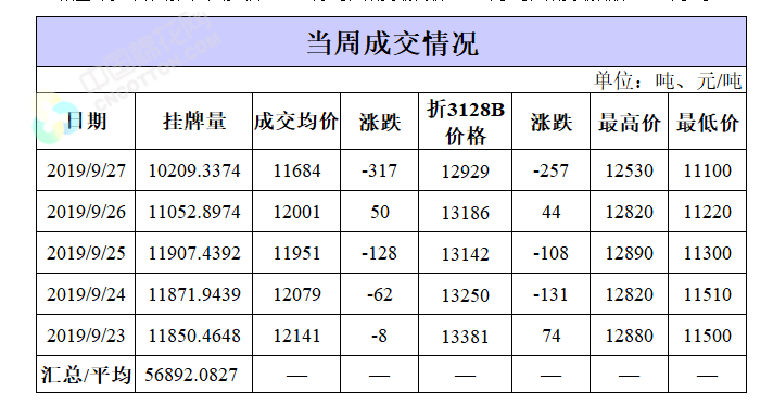 截至9月27日,累計(jì)計(jì)劃出庫(kù)113.93萬(wàn)噸,成交最高價(jià)15930元/噸,成交最低價(jià)10750元/噸。