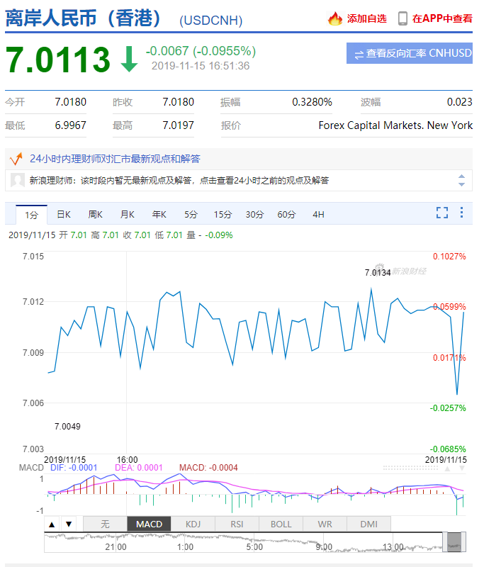 人民幣美元匯率(20191115)