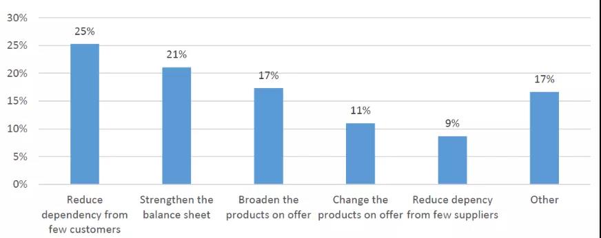 當(dāng)問及企業(yè)從危機(jī)中吸取了哪些教訓(xùn)(圖8)時,最重要的教訓(xùn)是“減少對少數(shù)客戶的依賴”(25%),其次是“加強(qiáng)資產(chǎn)負(fù)債表”(21%)和“增加可提供產(chǎn)品種類”(17%),“改變所提供的產(chǎn)品”(11%)和“減少對少數(shù)供應(yīng)商的依賴”(9%)。