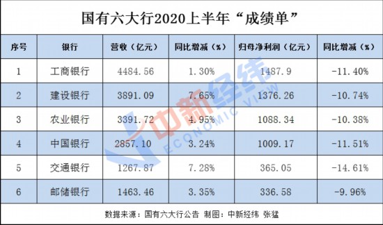 中新經(jīng)緯客戶端8月31日電 (張猛) 30日,國有六大行2020年半年報(bào)悉數(shù)出爐。半年報(bào)顯示,國有六大行上半年?duì)I收均有所提升,但凈利潤集體下滑。