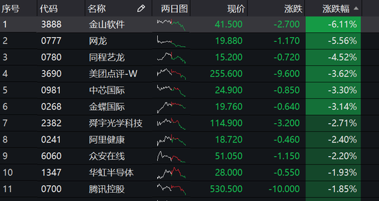 恒生科技股走勢(shì)分化,比亞迪(77, -0.15, -0.19%)電子(32.85, 3.40, 11.55%)暴漲11%,微盟漲5%,小米漲超4%。金山軟件(41.5, -2.70, -6.11%)大跌6%,網(wǎng)龍(19.88, -1.17, -5.56%)跌超5%,美團(tuán)、中芯跌超6%。