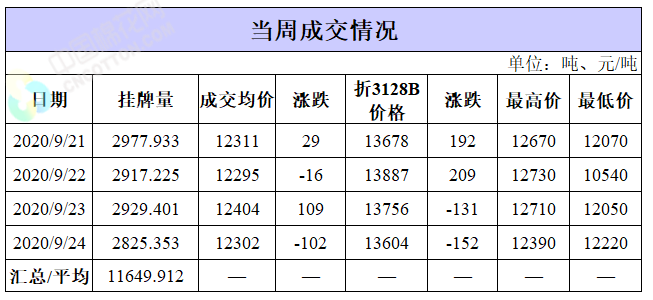截至9月24日,累計計劃出庫48.88萬噸,成交最高價13120元/噸,成交最低價10440元/噸。