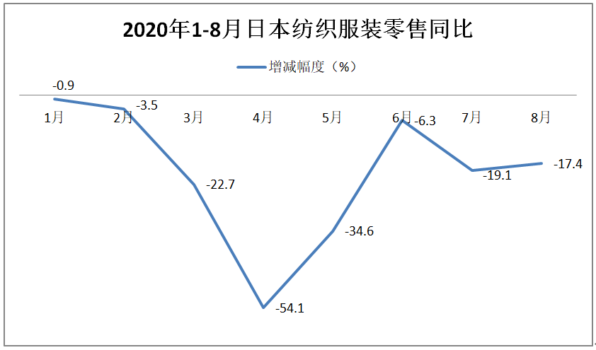 據(jù)日本經(jīng)濟產(chǎn)業(yè)省統(tǒng)計,8月日本商品零售環(huán)比下降0.1%,同比下降1.9%。其中紡織服裝零售環(huán)比下降7.3%,同比下降17.4%。