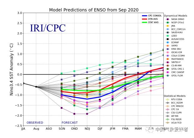 其中,美國NOAA宣布,拉尼娜已經(jīng)出現(xiàn),維持至2020-2021年冬季末的概率達85%,維持到明年春季的概率達60%;
