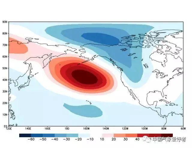 拉尼娜年P(guān)NA負位相型典型分布,圖為500百帕距平