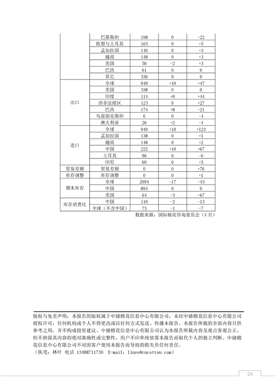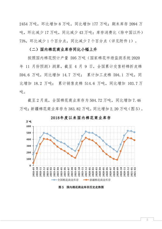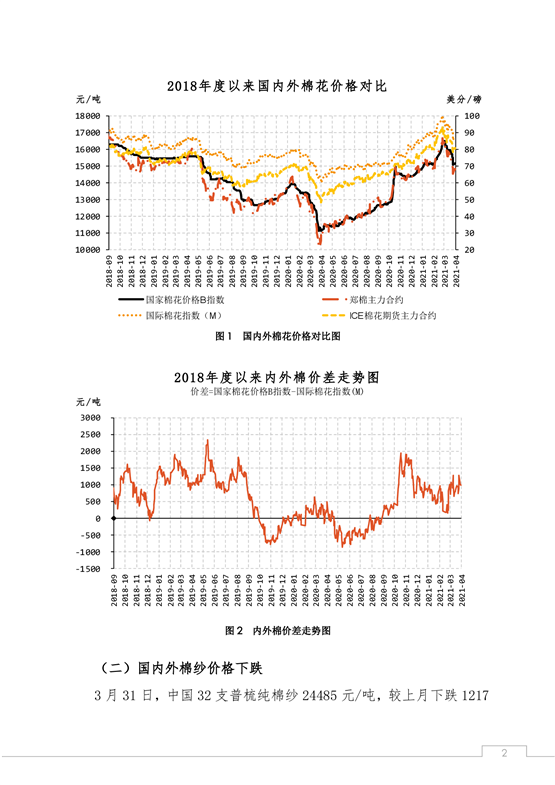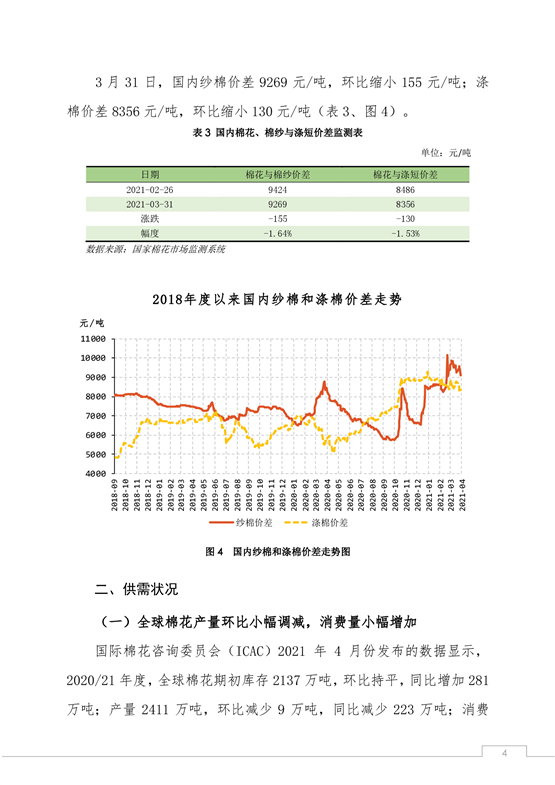 中國(guó)棉花市場(chǎng)4月月報(bào)(數(shù)據(jù)篇):國(guó)內(nèi)外棉價(jià)沖高回落