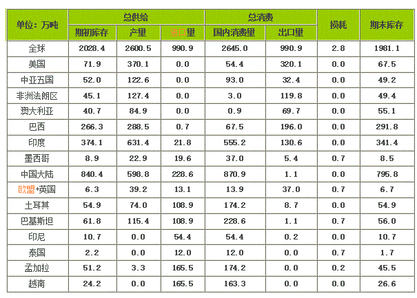 USDA 2021年5月全球棉花供求預(yù)測(cè)(2021/2022年度)