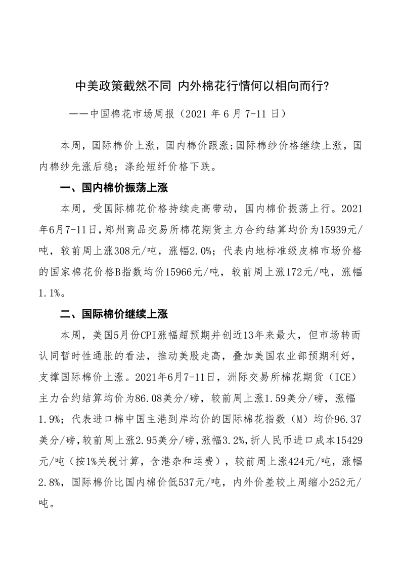 中國(guó)棉花市場(chǎng)周報(bào)(20210607-0611)