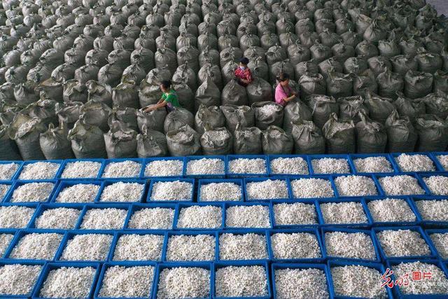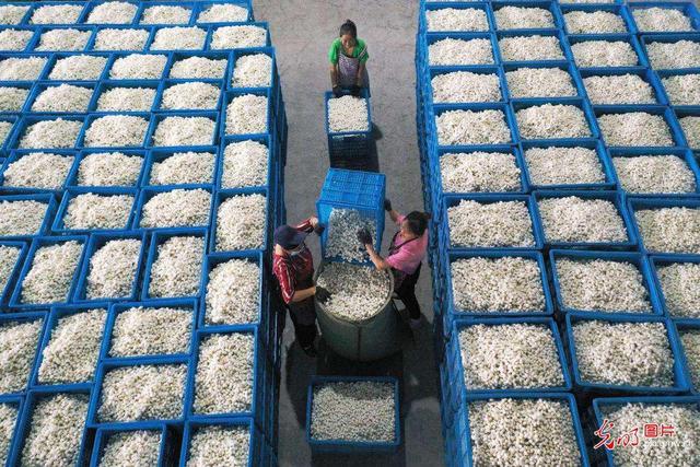 2021年9月8日,重慶市黔江區(qū)雙河絲綢工人將從農(nóng)戶手中收購(gòu)來(lái)的秋蠶繭入庫(kù)。時(shí)下,正是秋蠶繭收購(gòu)時(shí)節(jié),當(dāng)?shù)亟z綢公司抓緊收購(gòu)、烘烤和入庫(kù),確保增產(chǎn)增收。