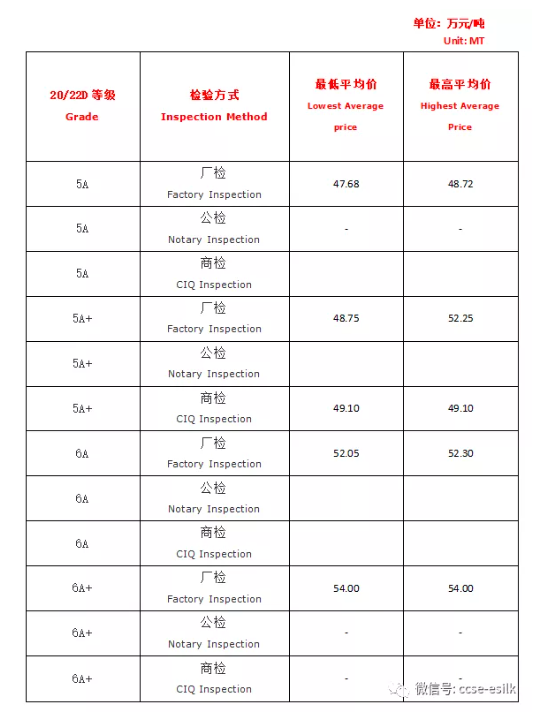 【本周高品位生絲協(xié)作單位成交價(jià)格區(qū)間(試運(yùn)行)】