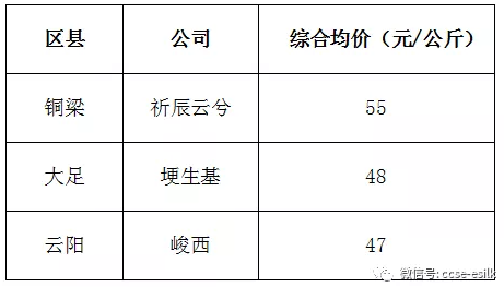 根據(jù)重慶繭絲綢協(xié)會統(tǒng)計,這兩日的2021年正秋蠶繭收購價格為:
