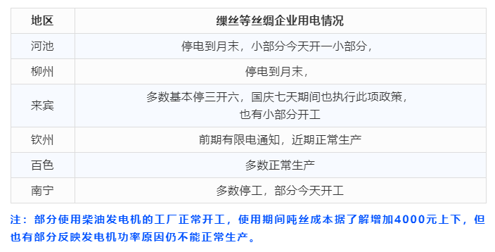 絲價(jià)有所反彈 廣西限電措施升級(jí)(20210927)