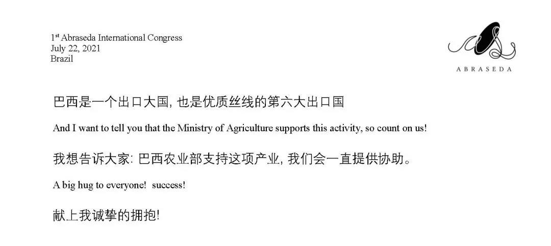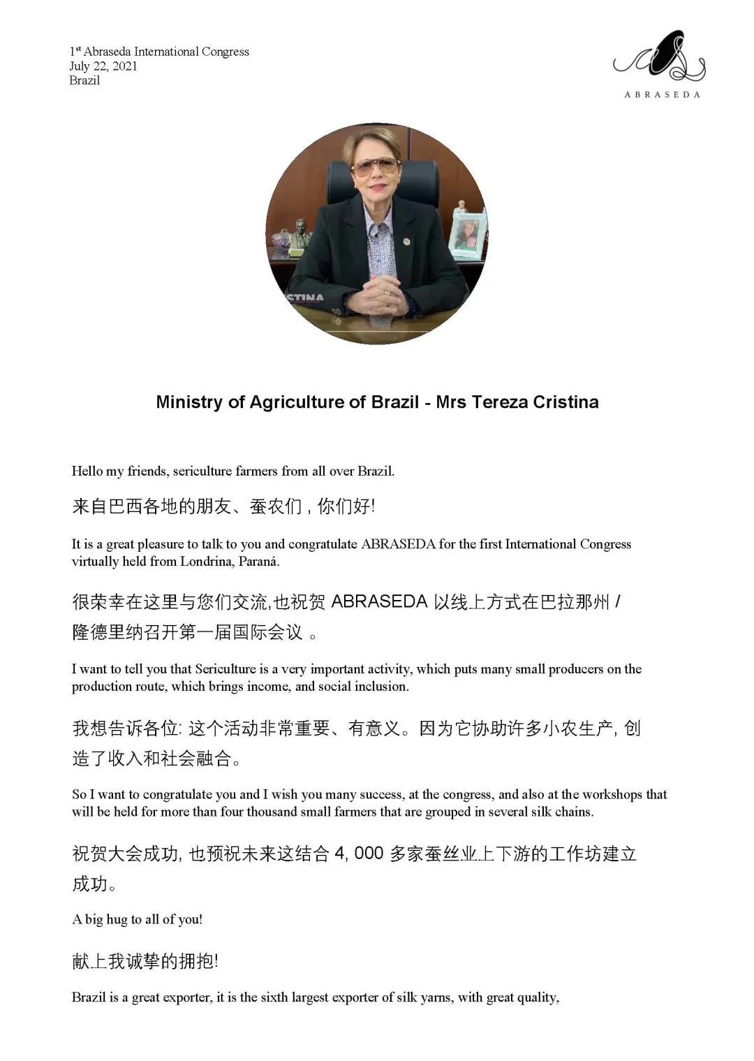 第一屆巴西絲綢協(xié)會國際會議 | 巴西農業(yè)部Tereza Cristina致辭