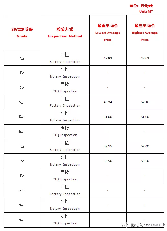 【本周高品位生絲協(xié)作單位成交價格區(qū)間(試運(yùn)行)】