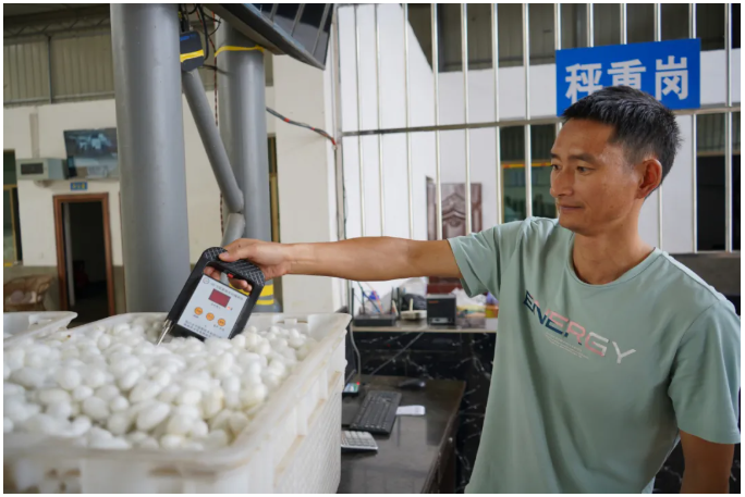 中絲天成惠民鎮(zhèn)蠶繭站站長(zhǎng)李呂濤告訴記者,“惠民蠶繭站對(duì)養(yǎng)蠶戶提供全方位的技術(shù)支持和服務(wù),通過(guò)走村入戶的方式,指導(dǎo)蠶農(nóng)提高養(yǎng)蠶技術(shù),助蠶農(nóng)提產(chǎn)增收?!?/p>