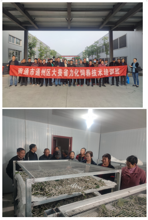 在前期已完成示范主體遴選、公示、物化補貼物資——51%高濃度復(fù)合肥采購、發(fā)放、示范主體“農(nóng)技耘APP”安裝、每月向“中國農(nóng)技推廣”欄目發(fā)送“農(nóng)情”或“日志”2條等基礎(chǔ)上,10月22日,他們按照當(dāng)前疫情防控要求,在征得領(lǐng)導(dǎo)批準(zhǔn)的情況下,組織蠶??萍际痉吨黧w及輻射農(nóng)戶(蠶農(nóng))23名、蠶桑科技示范主體技術(shù)指導(dǎo)員、項目實施專家組計36人,赴江蘇省養(yǎng)蠶規(guī)模最大同時也是蠶桑省力化、規(guī)模化、機械化工作開展最好的2個縣——東臺市、海安市示范基地參觀學(xué)習(xí)。