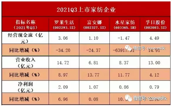 從上市公司三季報來看,羅萊生活、水星家紡、富安娜、孚日股份等家紡公司財報公布數(shù)據分折。