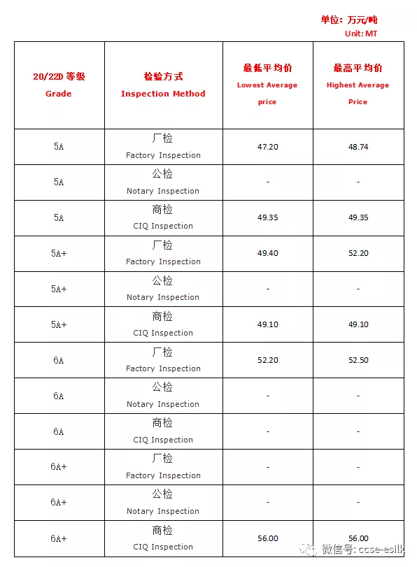 【本周高品位生絲協(xié)作單位成交價(jià)格區(qū)間(試運(yùn)行)】